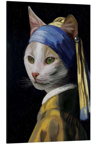 Posterlounge   Vægdekoration   Dyr   Husdyr   Katte   Pineapple Licensing   Print på aluminium Katze mit dem Perlenohrring