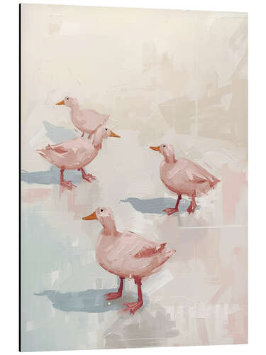 Posterlounge   Vægdekoration   Lyserosa   Ohkimiko   Print på aluminium Ducks on the ice