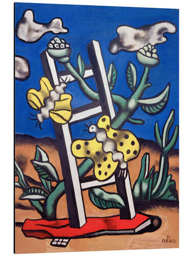 Posterlounge   Vægdekoration   Maleri   Fernand Léger   Print på aluminium Two yellow butterflies on a ladder, 1951