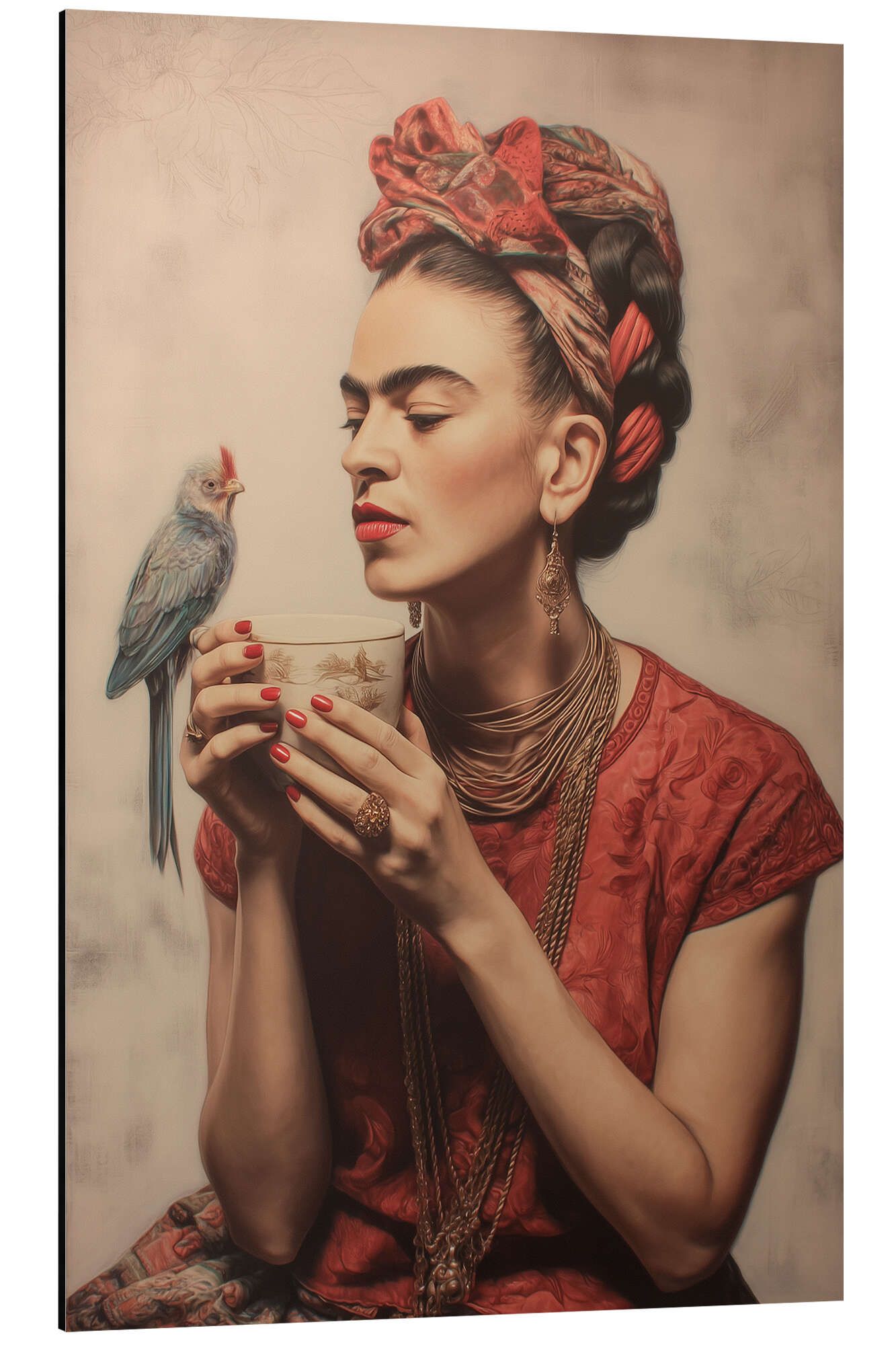 Posterlounge   Vægdekoration   Stjerner & kendte   Frida Kahlo   Carina Artspace   Print på aluminium Bird love with Frida