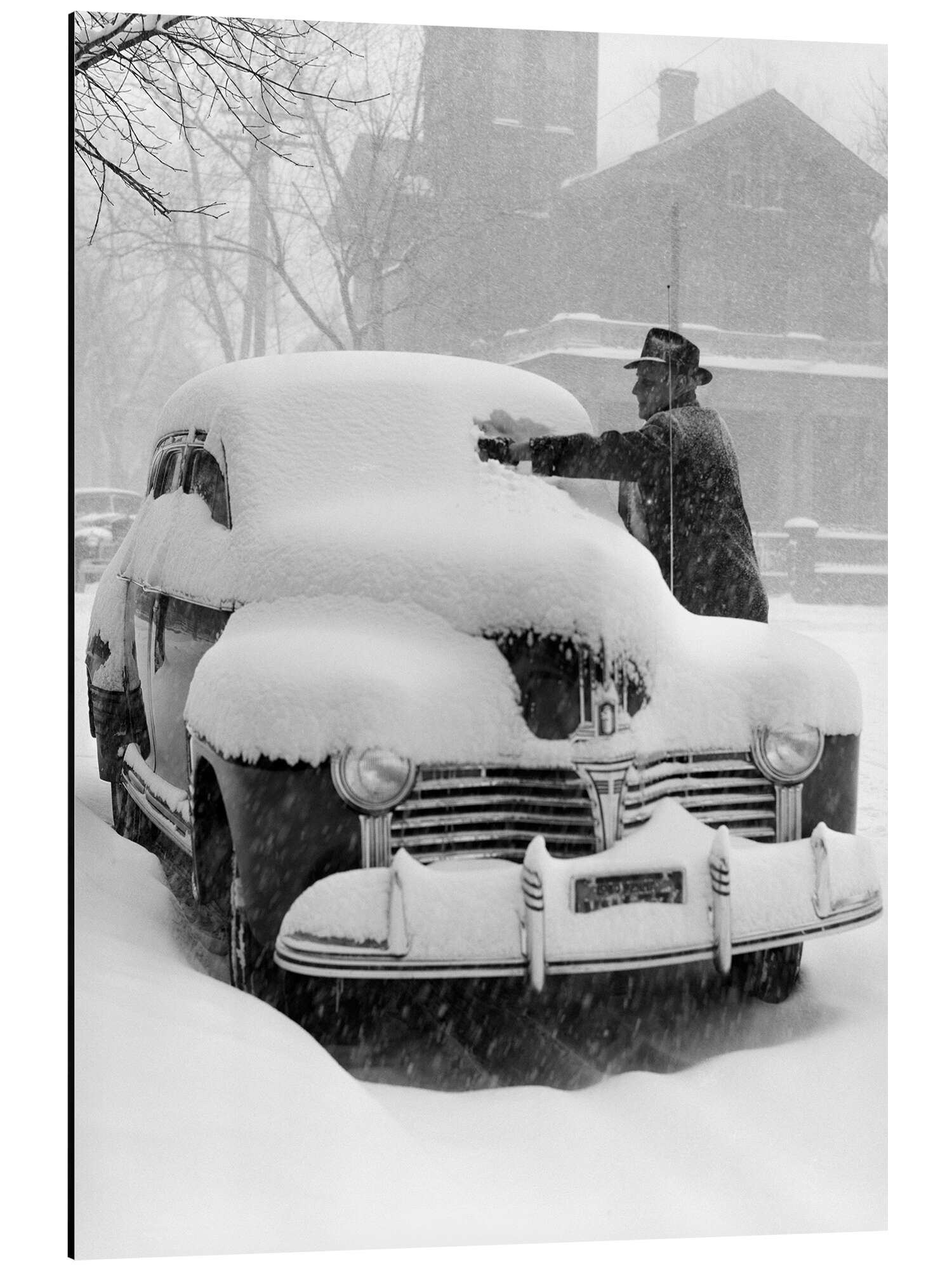 Posterlounge   Vægdekoration   Fotografi   Nostalgi   Print på aluminium 1940s vintage car after a snowfall