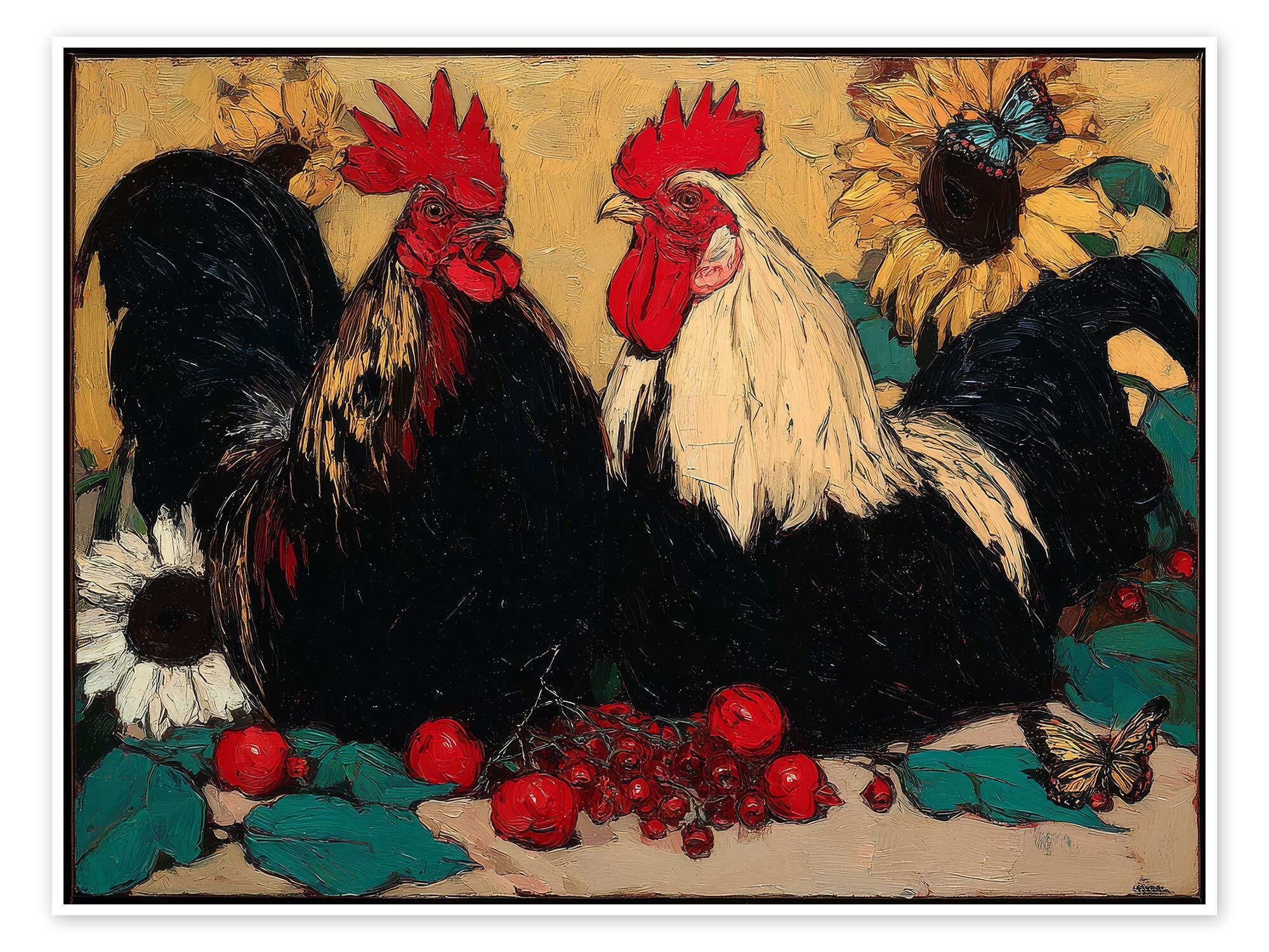 Posterlounge   Vægdekoration   Gaveidéer   Påske   DejaReve   Plakat Two Roosters at Dawn