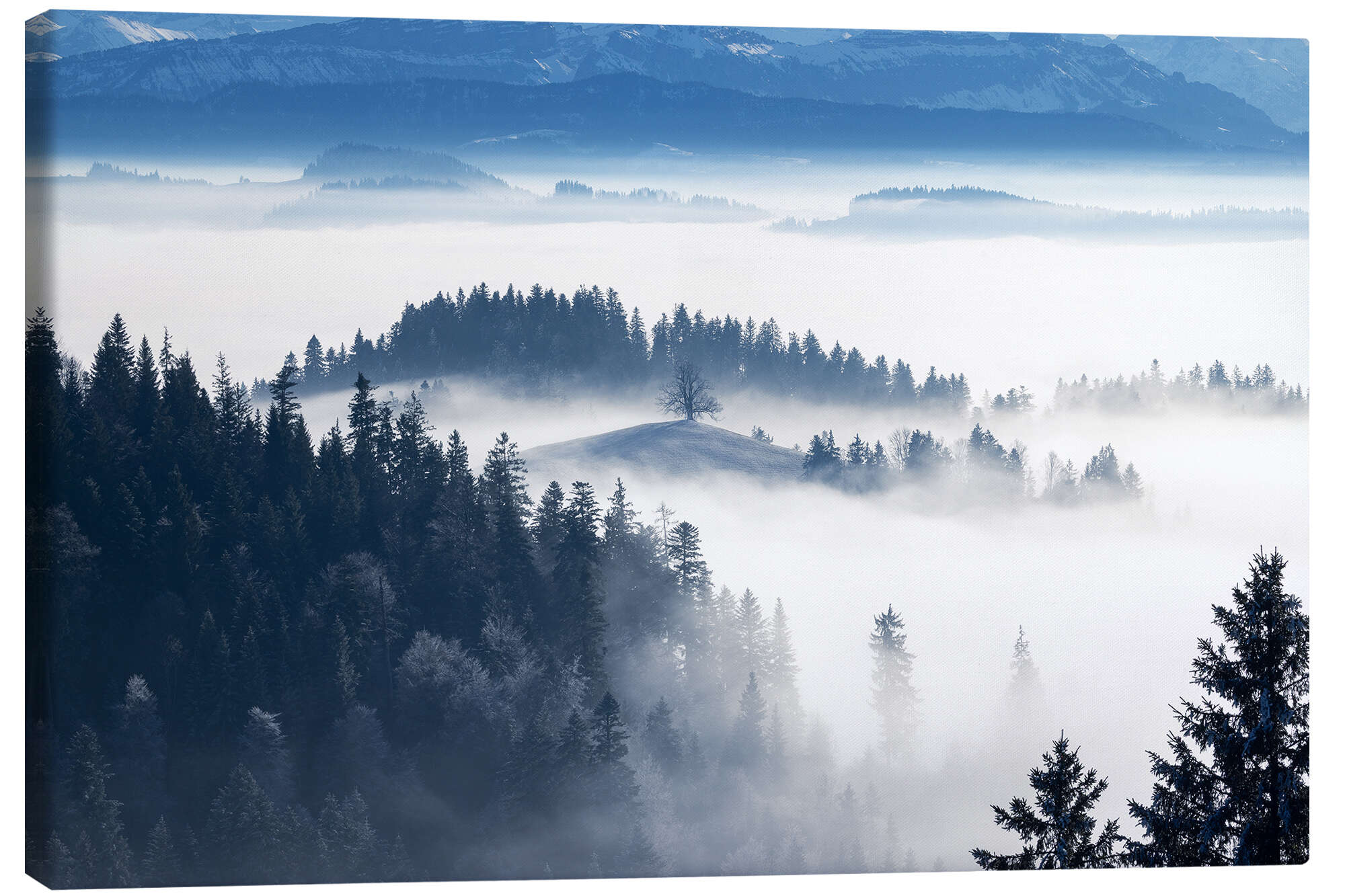 Posterlounge   Vægdekoration   Blå   Marcel Gross   Lærredsbillede View over the sea of fog in the wintry Emmental region