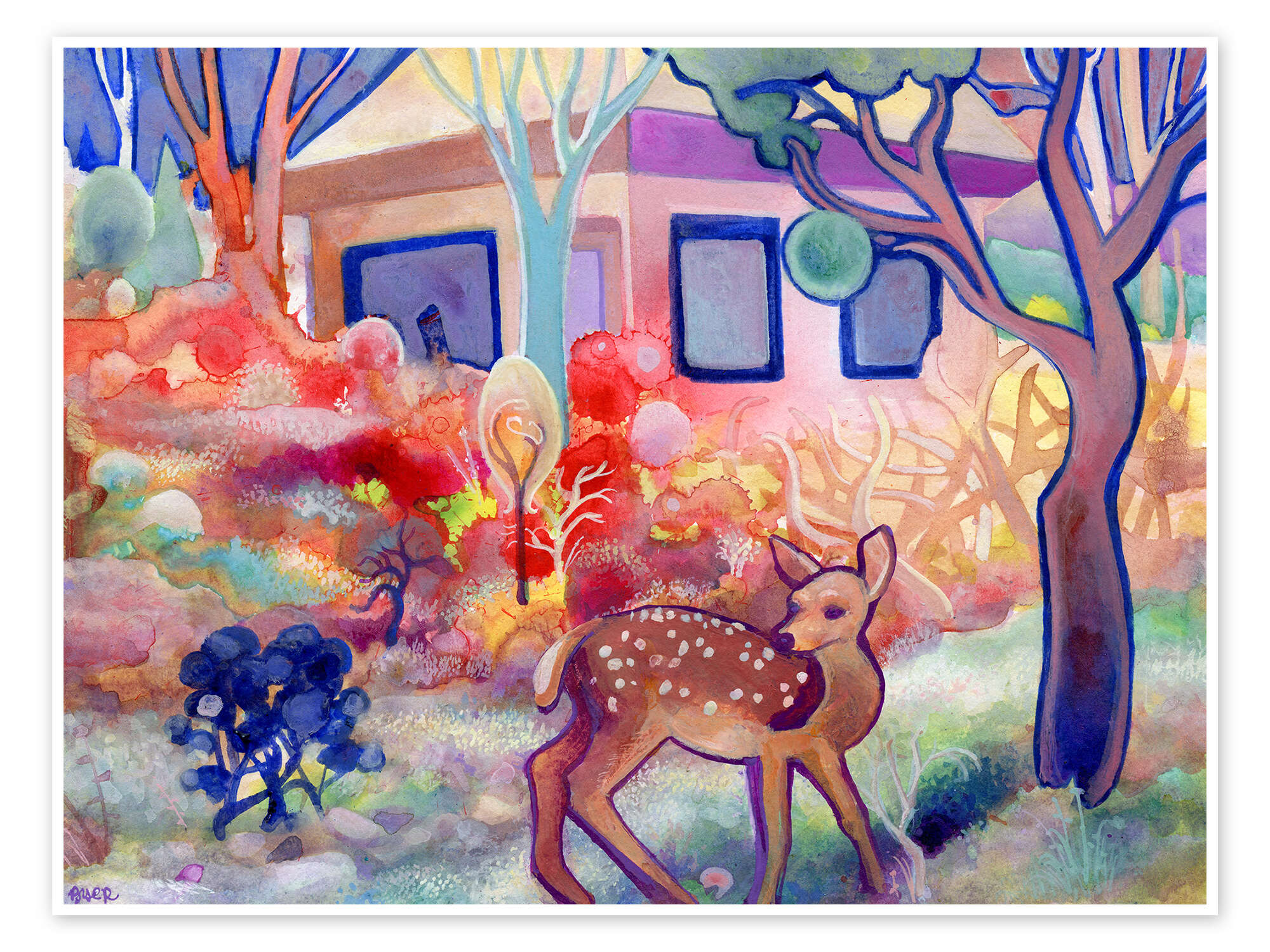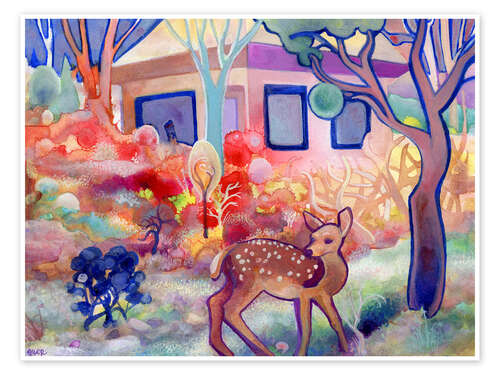 Posterlounge   Vægdekoration   Børneværelse   Josh Byer   Plakat Fawn in the Backyard